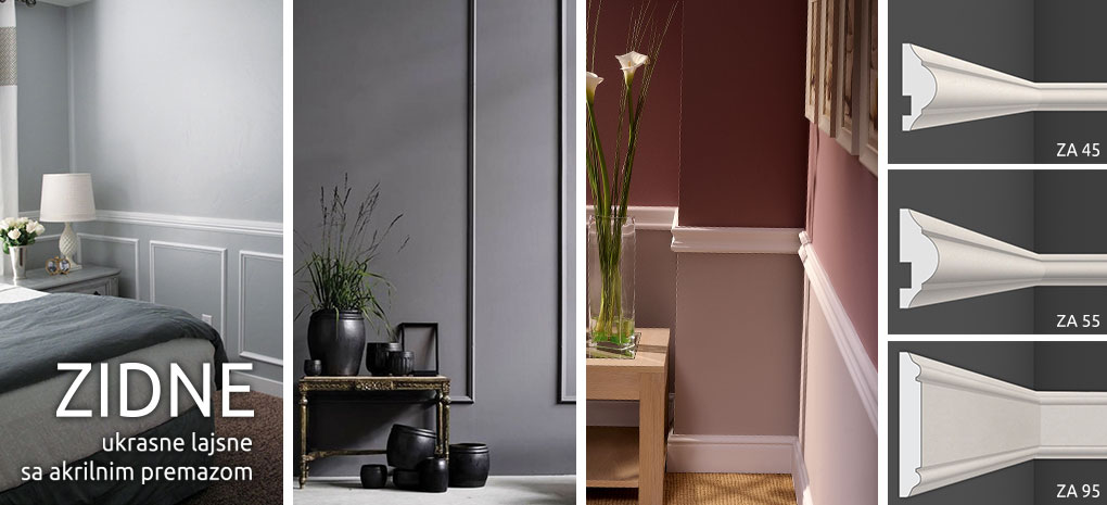 Širok spektar ukrasnih lajsni i elemenata napravljenih od stiropora.